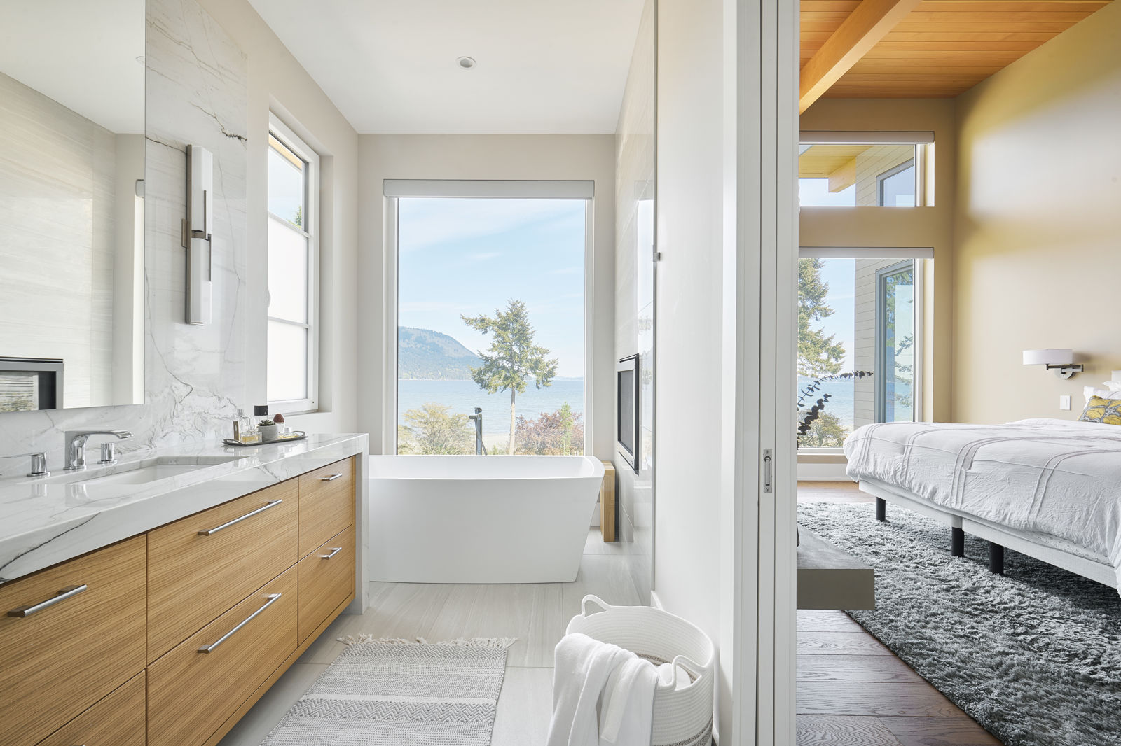 This modern West Coast waterfront home exemplifies our dedication to bespoke home design and outstanding craftsmanship.